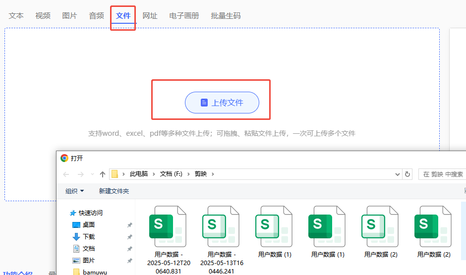 ○ 支持上传多个文件或包含图片、音视频的复合型PDF。