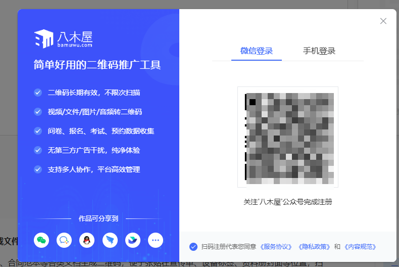 一、准备好工具,实现将PDF转成二维码,需要用到文件二维码生成器。登录注册即可使用,如图所示: