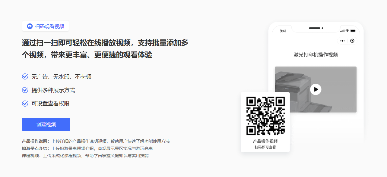 用户扫描后,可直接在手机浏览器中观看视频,无需安装额外应用。