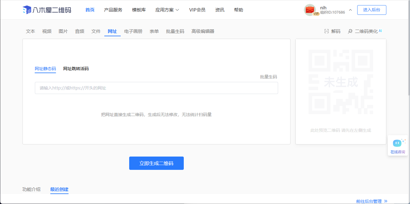 👉 点击体验八木屋二维码生成器,免费在线生成、Excel批量导入、自定义设计、活码管理一应俱全。