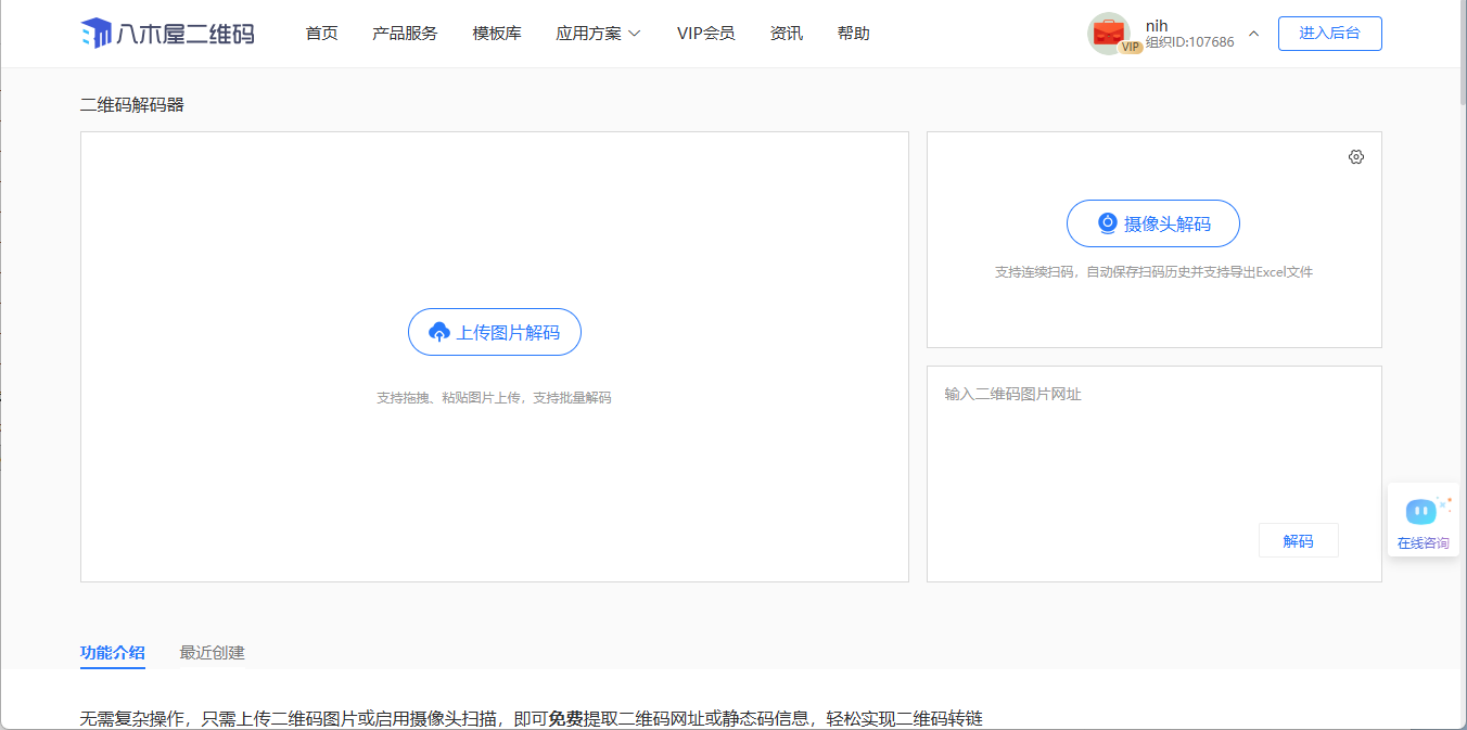 偶尔查看二维码,用基础免费工具即可;经常批量处理,建议选支持数据导出的专业工具。如果还需要生成二维码,选择生成+解析二合一的平台更方便,比如八木屋二维码同时支持自定义Logo、颜色等功能。